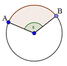 ![]() Kesknurk α toetub kaarele ${\stackrel \frown {AB}}$ |