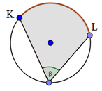 ![]() Piirdenurk β toetub kaarele ${\stackrel \frown {KL}}$ | ||