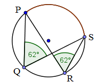 ∠PQS = 62o ∠PRS = 62o ${\stackrel \frown {PS}}$ = 124o |